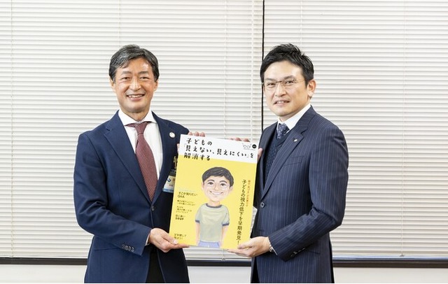 そこで、目に負担にならない1日の過ごし方や子どもの視力低下を早期発見するための気づきなどを掲載した冊子(第一弾『子どもの「見えない、見えにくい」を解消する』)をご覧いただき、少しでもお子さまの「見えない、見えにくい」を解消する手助けができればと考え、本社がある静岡市内の市立小中学校へ通われる方々へお届けするため、静岡市へ寄贈させていただく運びとなりました。