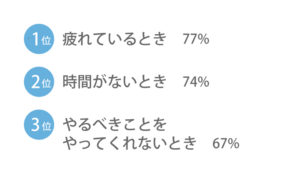 日々、いろいろなことを頑張っているママは特に余裕がないときなど日常のあらゆる場面でイライラしていることが分かります。