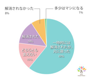 解消されたと回答された方は14%にとどまり、イライラが解消されることは難しいと分かりました。