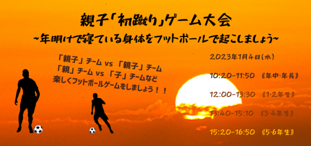 東急Sレイエス フットボールスクール 渋谷では、2023年1月4日(水)に親子「初蹴り」ゲーム大会を実施いたします。年始で寝ている身体をフットボールで起こしませんか?家族で同じチームや親vs子などフットボールを楽しみましょう。