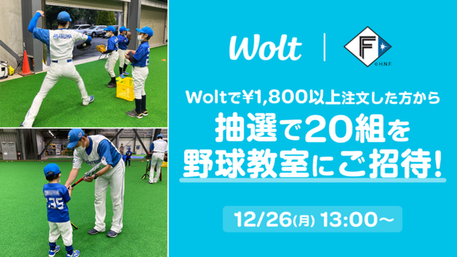 「Wolt x ファイターズ こども野球教室」についての詳細、ならびに応募に関する注意事項はWoltのアプリ内 キャンペーン特設ページ にてご確認ください。