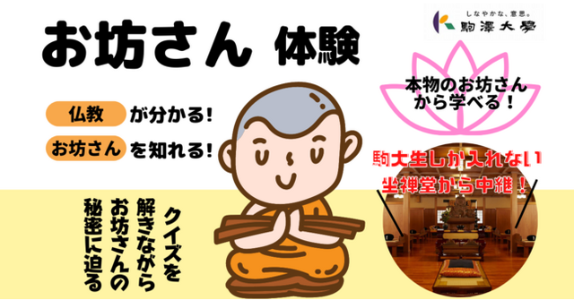 【お坊さんが生出演!】駒澤大学生しか入れない坐禅堂からLive中継「お坊さんのお仕事ってどういうもの!?お坊さんのお仕事と仏教について探究しよう!」