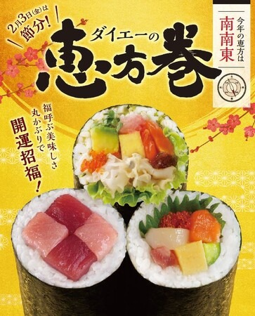 ダイエーでは、関東・近畿の190店舗にて、2023年『ダイエーの恵方巻』のご予約承りを12月11日(日)より順次開始しますので、お知らせいたします。