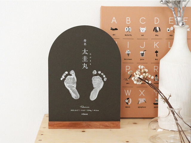 同ブランド40番目の商品となる、赤ちゃんの手形・足形を残せる「命名書」。フォルネ公式オンラインショップだけの限定オーダーアイテムとして新登場です。