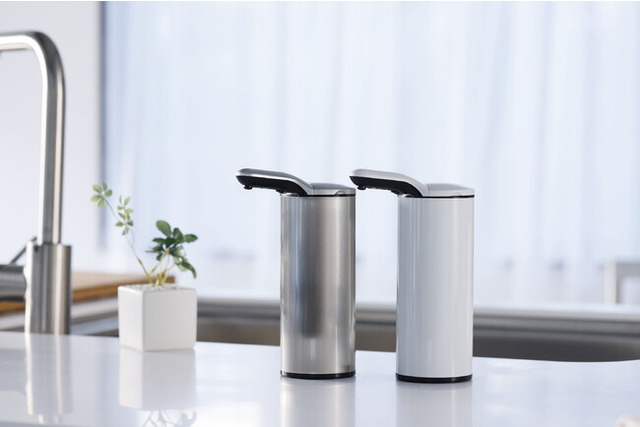 従来品の問題点を改善し、高級感のあるデザインで置くだけで空間を引き締めてオシャレにする『自動ソープディスペンサーPAPPI』を販売開始しました。使い方は簡単。ノズル下に手やスポンジをかざすだけで、洗剤が出ます。