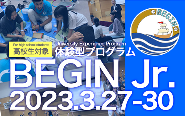 立命館アジア太平洋大学(大分県別府市、学長:出口治明、APU)が主催する高校生向けの大人気プログラム『BEGIN Jr.(ビギンジュニア)』2023年春の、参加申込受付を開始しました。2023年3月27日(月)~30日(木)の4日間で実施するこのプログラムは、「APUの基礎的な学びを通し、お互いの成長を無限に繋げる」をコンセプトに、問題発見や課題解決能力の向上を目指して、グループごとにミッションに挑戦しながら学びを得る体験型プログラムです。