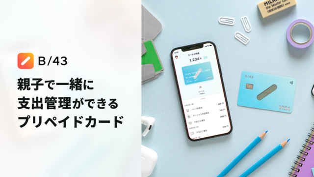 「B/43ジュニアカード」は子どものうちから、キャッシュレス時代に適したお金の管理スキルの習得をサポートするサービスです。保護者がチャージした分しか使えないプリペイドカードであるため、使いすぎの心配がなく、クレジットカードを持たせる前の練習として最適です。親子それぞれのアプリから支払い履歴を確認でき、お金に関するスムーズなコミュニケーションを実現します。
