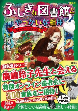 日本だけでなくアジアでも大人気の児童書作家・廣嶋玲子氏の新シリーズ「ストーリーマスターズ」シリーズ第3巻『ふしぎな図書館とやっかいな相棒』の2022年12月14日(水)発売を記念して、廣嶋玲子先生とすごすオンライン読者会を2023年3月25日(土)に開催いたします。