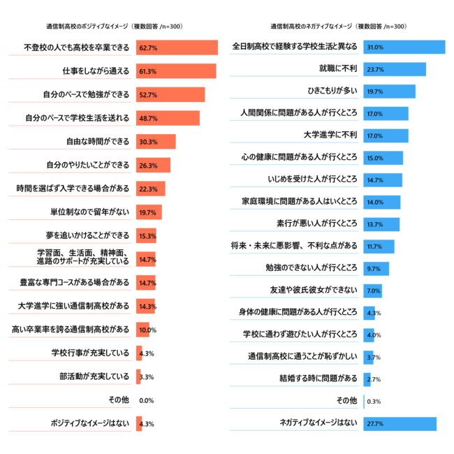 Q3.通信制高校のポジティブなイメージ、ネガティブなイメージをお答えください。(複数回答/n=300)
