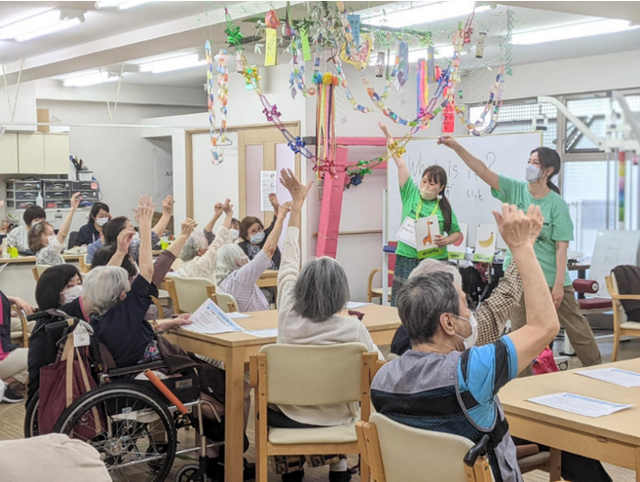介護施設の利用者の方々の、ご家族内及び、国籍を越えたコミュニケーションの促進、英語のアクティビティによる認知症予防のサポート等、シニアの心身の健康促進に寄与すること目的に実施する学び直し英語プログラム