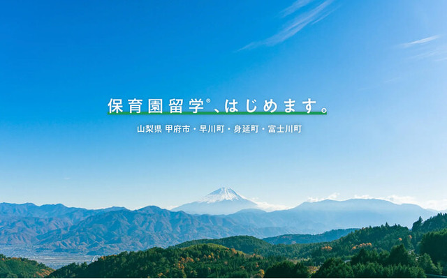 山梨県は、東京圏に隣接した立地条件でありながら、富士山や南アルプスに代表される豊かな自然環境、ほうとう等の郷土食、長い歴史を誇る伝統文化等、多様な地域資源に恵まれており、保育園留学には好適の地だと思います。今回は、本格導入前の実証実験となりますが、参加者の皆様に各地域の暮らしの魅力を体感いただけるよう、万全の準備を整えてお出迎えさせていただきたいと思いますので、ぜひモニターへの応募と、正式募集開始のお知らせへエントリーください。皆様のご応募を心からお待ちしております。