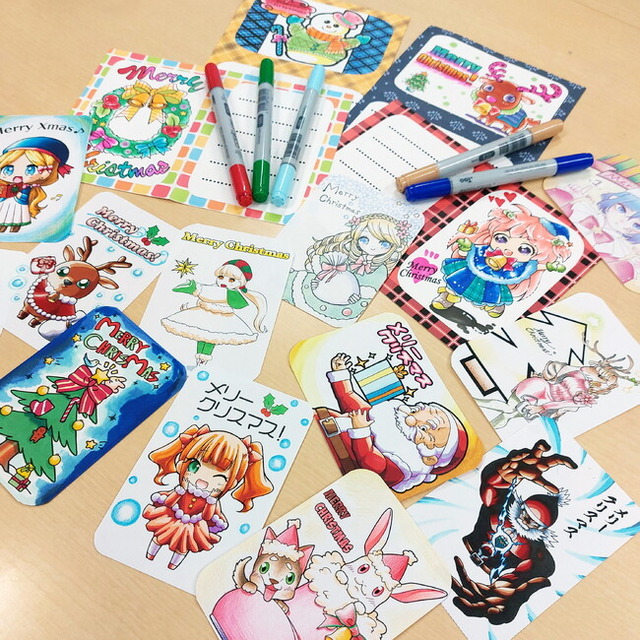 参加される方には各種クリスマス、年賀状をテーマにしたイラスト素材を好きなように着色していただく、のみです!お子様から大人の方までお楽しみいただけます!