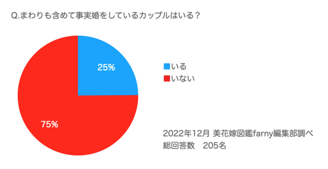 まわりを含め事実婚をしているカップルは25%
