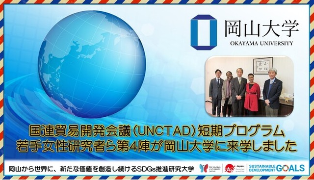 ・【岡山大学】国連貿易開発会議(UNCTAD)公式サイトで本学との共同プロジェクト「途上国からの若手女性研究者のための共同研究・研修コース」の紹介ページが開設されました!