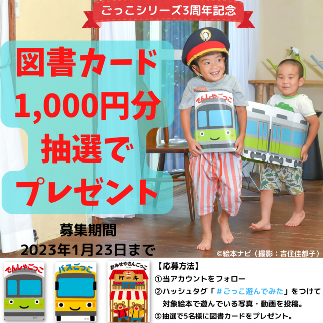マイクロマガジン社(東京都中央区)は、本の中に入って読む絵本『ごっこ』シリーズ3周年を記念し、抽選で図書カードが当たる「#ごっこ遊んでみた」キャンペーンを開催いたします。