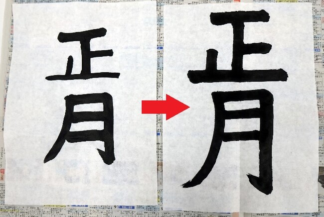 「書き初めお悩みQ&A 編」で、樋口先生と西野先生にいただいたアドバイスをもとに、子どもと保護者が実際に書き初めに挑戦しました。今回、挑戦したのは、習い事などで筆をもった経験のない小学3年生とその保護者。「まずは文字を書かずに線を書いてみる」「文字の輪郭をなぞる」など、具体的な方法に取り組む中で、子どもの文字に変化が表れました。