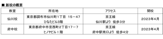 2023年4月、新たに仙川校・府中校を開校し、京王線沿線では調布校に加えて計3校の運営になります。