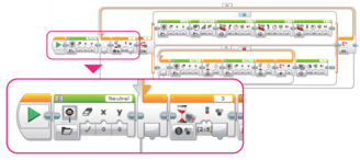 主な使用教材である教育版レゴ(R) マインドストーム(R) EV3等を用いて、モーターや各種センサーを使ってロボトを組み立て、ビジュアルアイコンを使ったソフトウェアでプログラミングを行います。