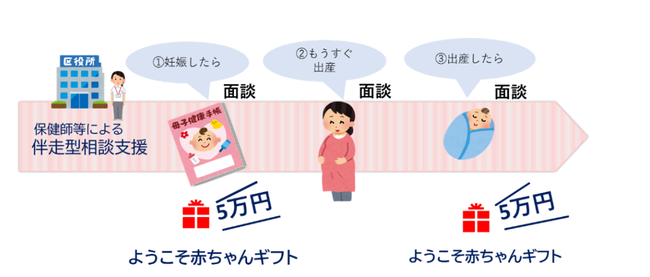 全ての妊産婦に、現金で合計10万円を支給します。