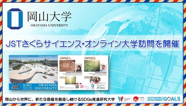 国立大学法人岡山大学(本部:岡山市北区、学長:槇野博史)は、2022年11月19日、国立研究開発法人科学技術振興機構(JST)との共催により、さくらサイエンス・オンライン大学訪問を開催しました。