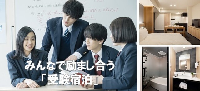 「総合型選抜入試」のように、学力検査の点数を競い合うだけでなく、一人ひとりの生徒の個性に向き合うような入学試験も増え、受験を取り巻く環境も変わってきています。こうした中、受験に一人で戦うスタイルから、仲間や家族で励まし合いながら受験に臨むような形があっても良いのではと、MIMARUは考えました。APARTMENT HOTEL MIMARUは、約40平方メートル 以上からなる客室で、受験する友人同士や親御さまが一緒に滞在しても十分な広さです。キッチン、リビング・ダイニング、寝心地の良いベッド、広いバスタブ付きの浴室など、まるで自宅にいるような環境で、普段の生活リズムを崩さずに受験に臨めます。また、東京、京都、大阪のターミナル駅に近い都市部に立地し、試験会場へのアクセスも良好です。慣れない場所で、受験生が孤独に頑張ることなく、仲間や家族の応援が本番で大きな力になるような、受験の取り組み方を全力でサポートします。