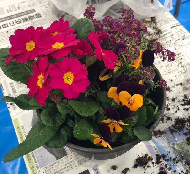 厳しい寒さに負けず、元気な花々を楽しんでいだたきたいという願いを込めて、今年度の新企画として、寄せ植えイベントを提案しました。今回のイベントを通じて、植物への関心の輪が広がれば、地域の緑化にもつながると考えています。今回の寄せ植えは千葉大学柏の葉キャンパスの花卉園芸学研究グループで育った苗と、再生プラスチックを使った鉢を使用したところがポイントです。担当した学生たち自身が、寄せ植えの奥深さに驚かされながらも、植物への関心を深めることができました。イベント開催のためにご協力いただいた皆さん、イベントに参加してくださった皆さん、ありがとうございました。