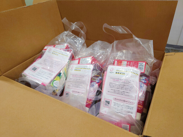 今回は、化粧品・日用品メーカーあわせて38社から約33万点もの商品の提供を受け、NPOなど、約200施設・100団体様にご協力いただき、シングルマザーを中心とした約3万世帯に、クリスマスに向けた「秋冬ギフト」として配送をスタートしました。