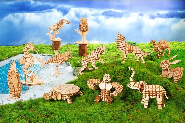 DIYクラフトキット「つくるんです(R)」、3Dウッドパズルにおける一番の特徴は工具・接着剤なしで組み立てられて、買ってすぐに作り始められることです。カット済みのウッドシートから、ひとつずつパーツを外していき、説明書に沿って組み立てていけばクオリティの高い3Dウッドパズルが出来上がります。
