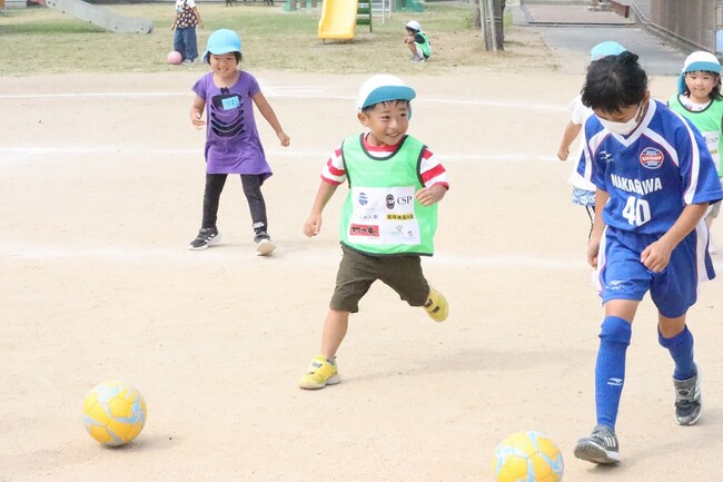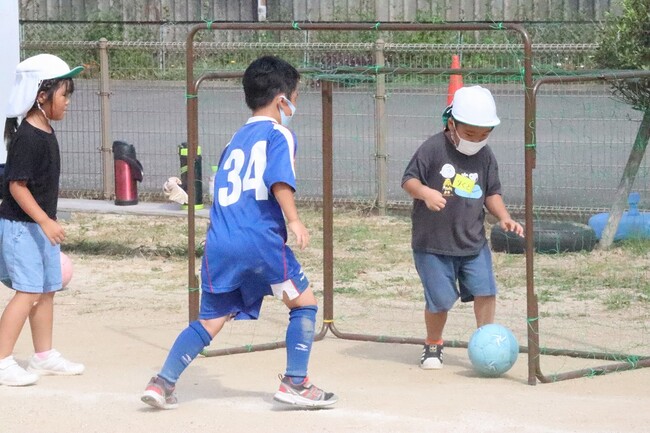今回の巡回サッカー教室は「ふるさと巡回指導」という企画で、卒園した保育園に成長した姿を見せに帰るサッカー巡回指導です。今回はさくら保育園の卒園生で、現在城東小学校「城東FC」・論田小学校「ジョイオーソ論田」に所属している小学6年生5人の保護者が小学校卒業式を前に、大好きなサッカーで子どもたちのために活動している姿を見せる体験をしてほしいと、当法人の企画にご連絡をいただきました。