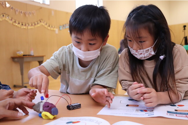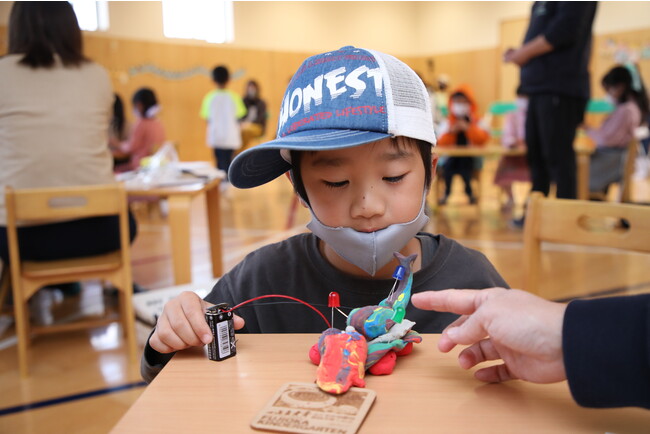 今回、STEAMS LAB JAPANの楽しい教材を使って、電気に興味を持ち科学の楽しさを学び、ディスカッションやグループワークを行い、ふじおかメソッドで大切にしている意見を聞く・話すという非認知能力を育むことを取り入れたイベント。こどもたちが真剣に学び、仲間同士で意見を伝えあう有意義な時間となりました。
