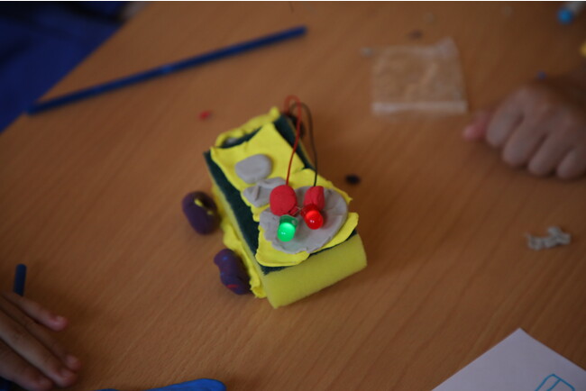 STEAM教育のひとつの科学あそびにフォーカスをし、今回は光る車をつくろう!をテーマに電気について学びました。