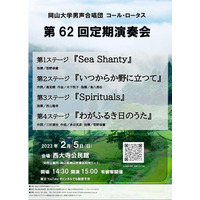 【岡山大学】岡山大学男声合唱団コール・ロータスが有観客で「第62回定期演奏会」を開催します〔2/5,日 西大寺公民館〕