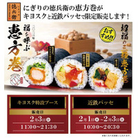 ~名古屋駅などお近くの駅でも徳兵衛の恵方巻をお気軽に~「にぎりの徳兵衛の恵方巻」ベルマートキヨスク5カ所+初出店の近鉄パッセで販売決定!