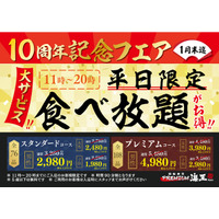 ~2023年1月18日(水)から1月31日(火)までの平日限定で、 平日限定食べ放題スタンダードコース・プレミアム…
