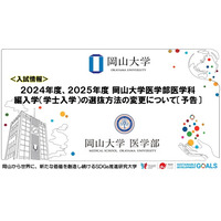 【岡山大学】2024年度、2025年度 岡山大学医学部医学科 編入学(学士入学)の選抜方法の変更について〔予告〕