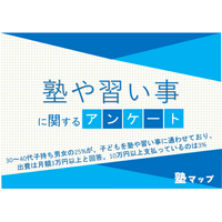 30~40代子持ち男女の25%が、子どもを塾や習い事に通わせており、出費は月額3万円以上と回答。10万円以上支払っているのは3%【塾や習い事に関するアンケート】