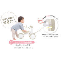 前輪幅調節機能とサドルリニューアルで、乗りやすさ劇的アップ!10ヶ月のベビーから運動あそびができるよ…