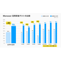 墨田区立桜堤中学校で「Monoxer」活用後、生徒470名の主要5科目の基礎事項テストの平均得点率が44%から70%へ上昇