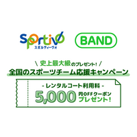 【BAND×Sportivoスポーツチーム応援キャンペーン】史上最大級のレンタルコート利用料5,000円OFFクーポンプレゼント!