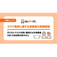 【子どものマスク着用に関する保護者の意識調査】子どもにマスクを常に着用させる親、約32%から約9%に減少
