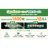 「paizaラーニング 学校フリーパス」の累計ユーザー数が約1600校、18万人を達成! 高等学校での「情報I」、大学での情報系学部新設でニーズ拡大