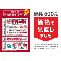 【ニトリ】お得な「生活応援キャンペーン」4月28日(金)から全国でスタート!家具配送料半額、さらに最大850アイテムが期間限定価格に。