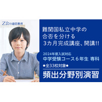 【Z会の通信教育】「中学受験コース」<2024年度入試対応>難関国私立中学の頻出分野にフォーカスした小6生対象の3カ月完成講座、5月開講!