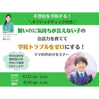 不登校を予防する!\ギフテッドチェック付き/賢いのに気持ちが言えない子の会話力を育てて学校トラブルをゼロにする!ママの声かけセミナー募集開始