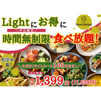 【平日限定特別企画!】“ザ ブッフェ ニューマーケットイオンモールむさし村山店”のライトコースを6/2(金)までの平日限定にて100円OFF!更に『時間無制限』で心ゆくまで食べ放題をお楽しみください!