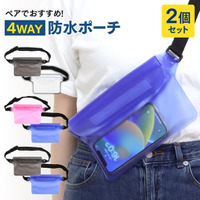 IPX8の防水ポーチ【ミズアソビ】ペアで使える2個セット。ベルト調整可能でウエスト・ボディ・ショルダー・肩掛け・首掛けバッグに。スマホや小物を防水保護して海水浴・SUP・プールを楽しもう!