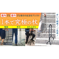 【待望の一般発売スタート】独自設計の4点杖がMakuakeで大反響。階段での歩行に加え、凹凸のある野外でも使える多点杖が、優れたバランス力で歩行器のように毎日の生活をサポートします。