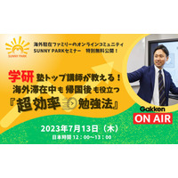 SUNNY PARK、世界中の駐在員家族向けに子どもの勉強法セミナーを学研オンエアと初開催