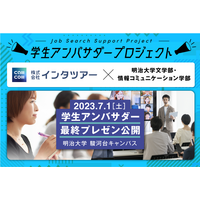 【就活イベント】「明治大学×インタツアー 学生アンバサダープロジェクト」学生インタビューによる企業情報の公開プレゼンテーションが7/1(土)に開催。産学連携で就活早期から大学生をサポート|インタツアー