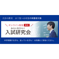 【Z会の教室】小学生の保護者対象「みらいをひらく、入試研究会」開催(参加無料・オンライン開催)